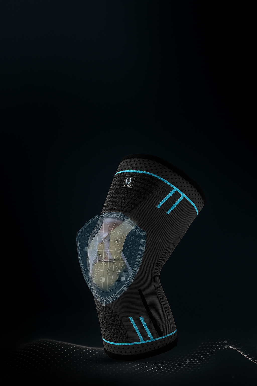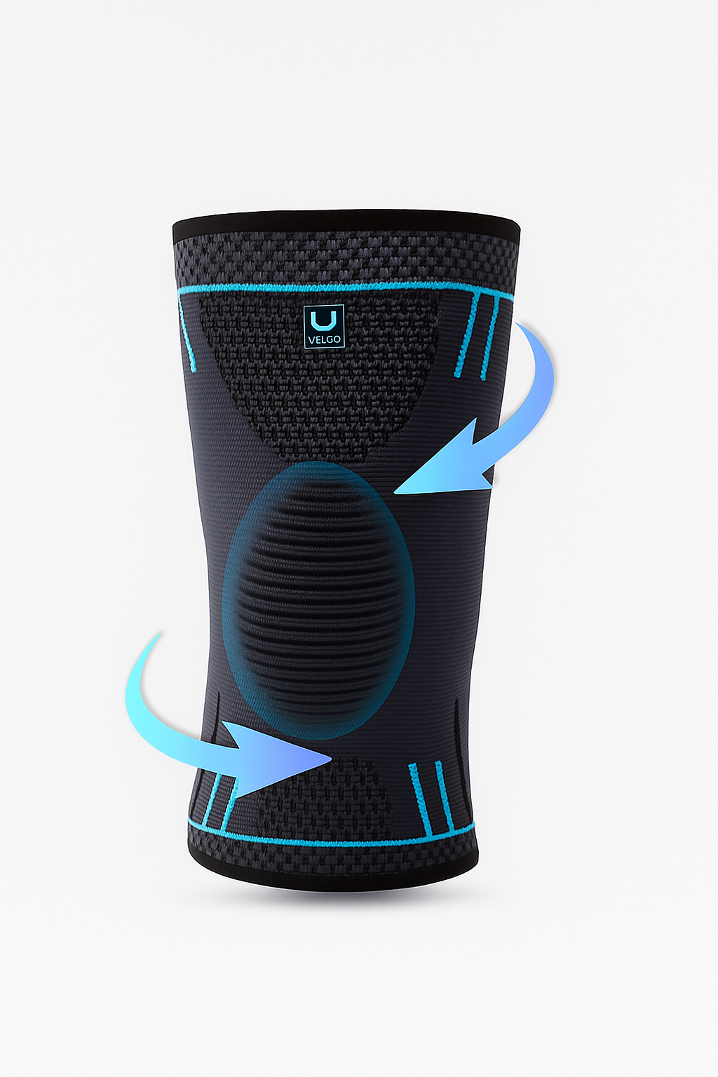 kompressions-knästöd, elastiskt, andningsbart och halkfritt knäskydd – lämpligt för fotboll, basket och annan träning.
